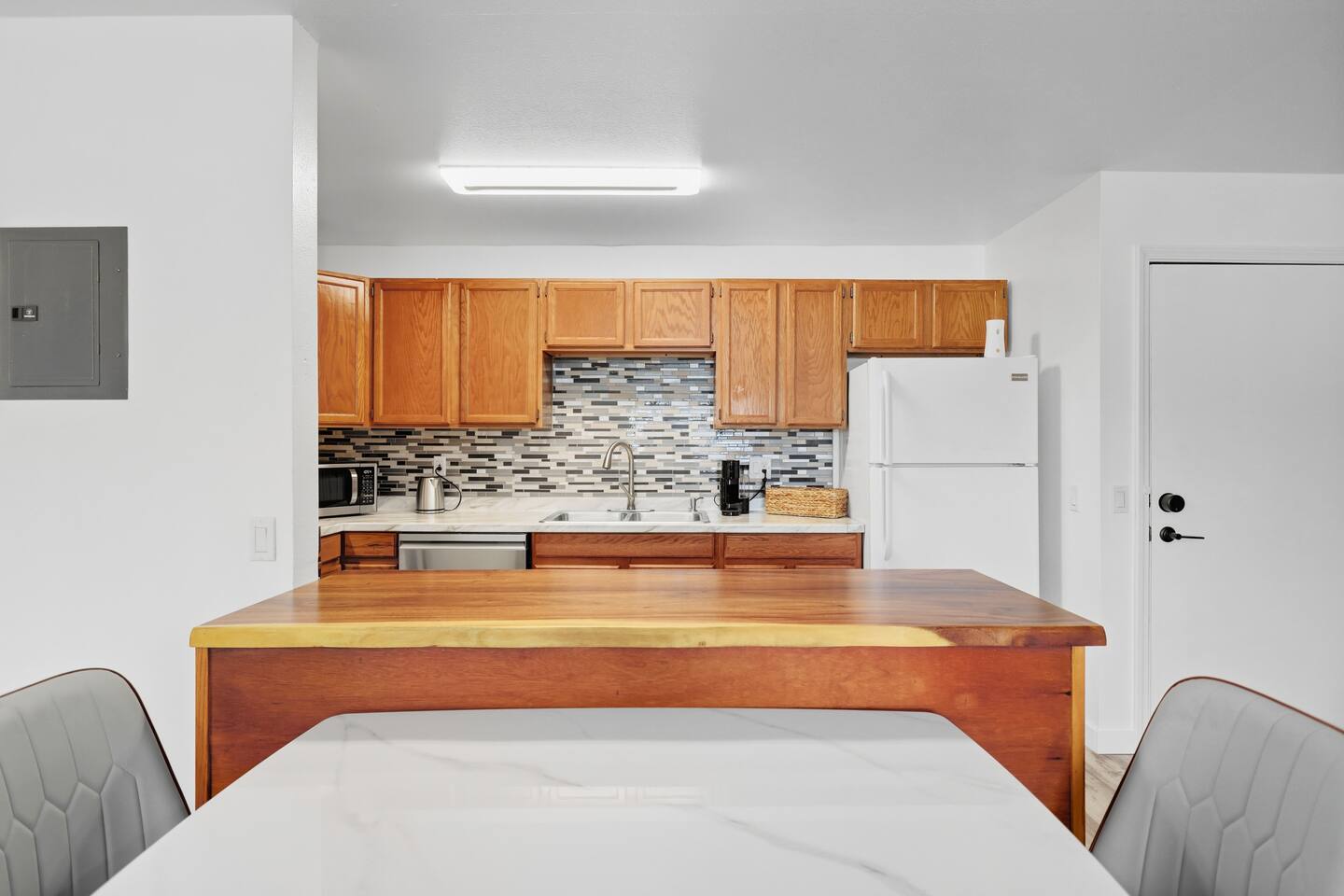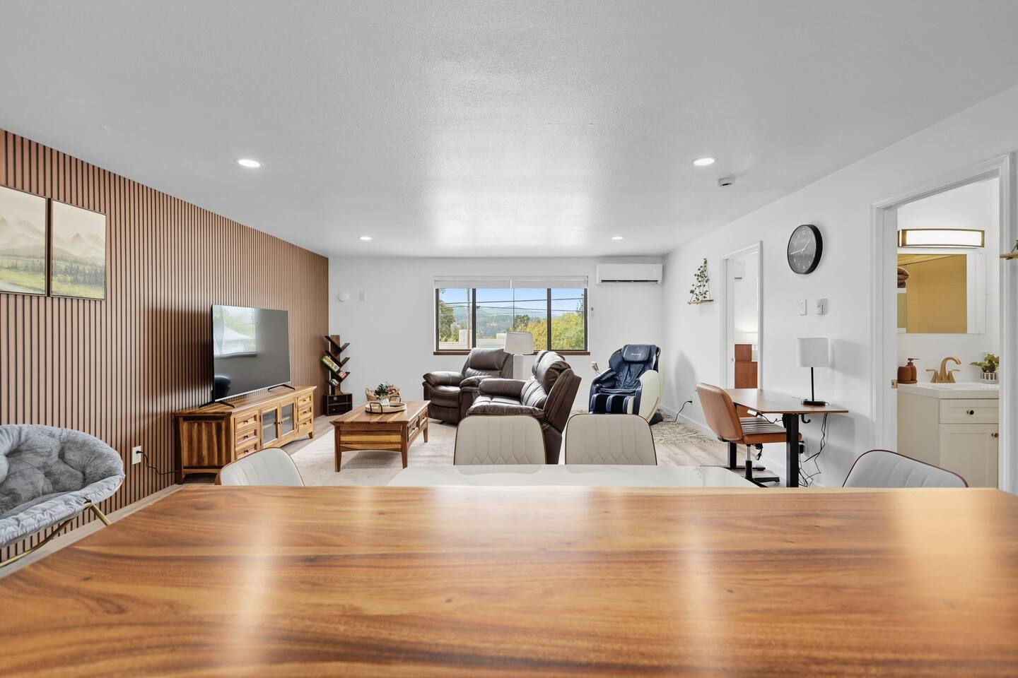 Newly renovated 2BR/2BA apartment (Apt B) in the heart of Hood River! Enjoy all-new furniture, a full kitchen, cozy living space, and a relaxing massage chair. Located above a mini grocery store and just a short walk to downtown shops, restaurants, and the riverfront. Perfect blend of comfort, style, and convenience — your ideal Hood River getaway!