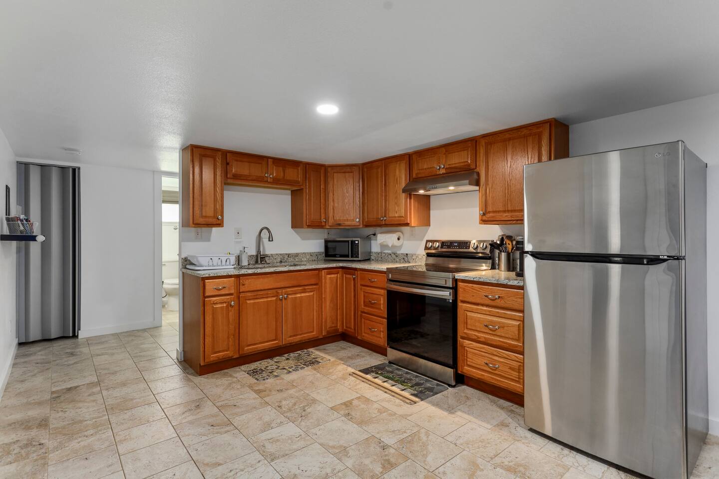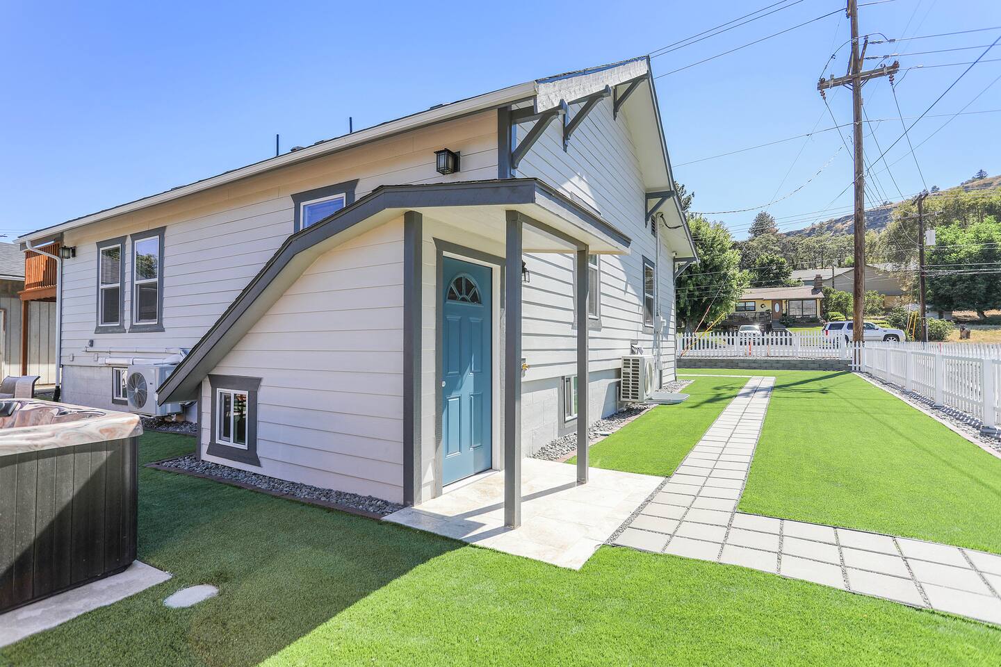 Discover this beautifully designed two-bedroom, one-bath apartment with its own private entrance in a prime location. This residence offers the comfort and convenience that surpasses a hotel stay. Each bedroom features a queen bed, and the home is equipped with modern amenities including a full kitchen, hot tub, flat-screen TV, high-speed Wi-Fi, laundry facilities, and more. Make this fully-furnished retreat your cozy getaway.